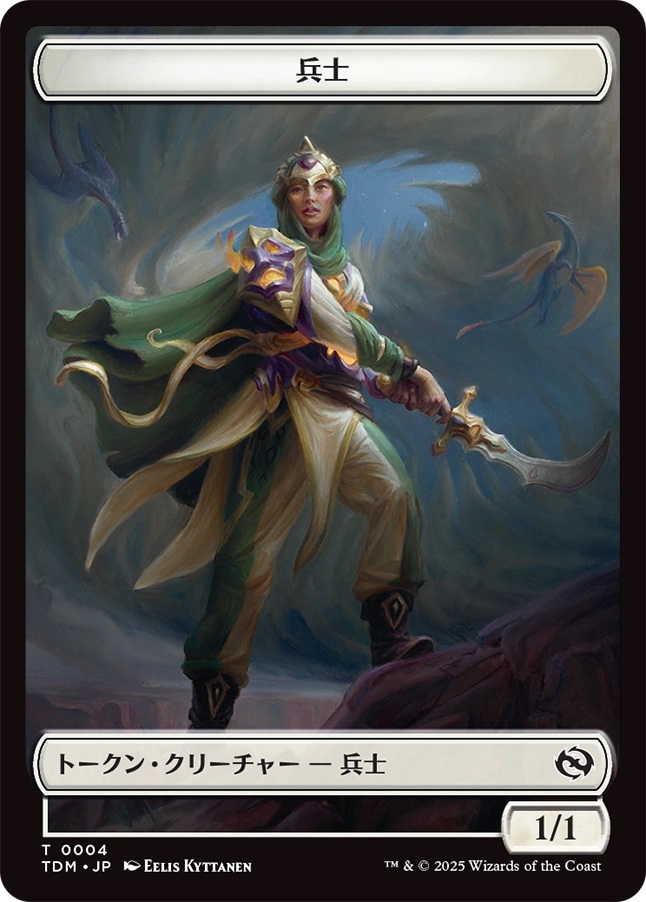 展示する原画はEelis先生の『戦士トークン』になります!背景にドラゴンも描かれており、タルキールらしいかなりかっこいい1枚です。