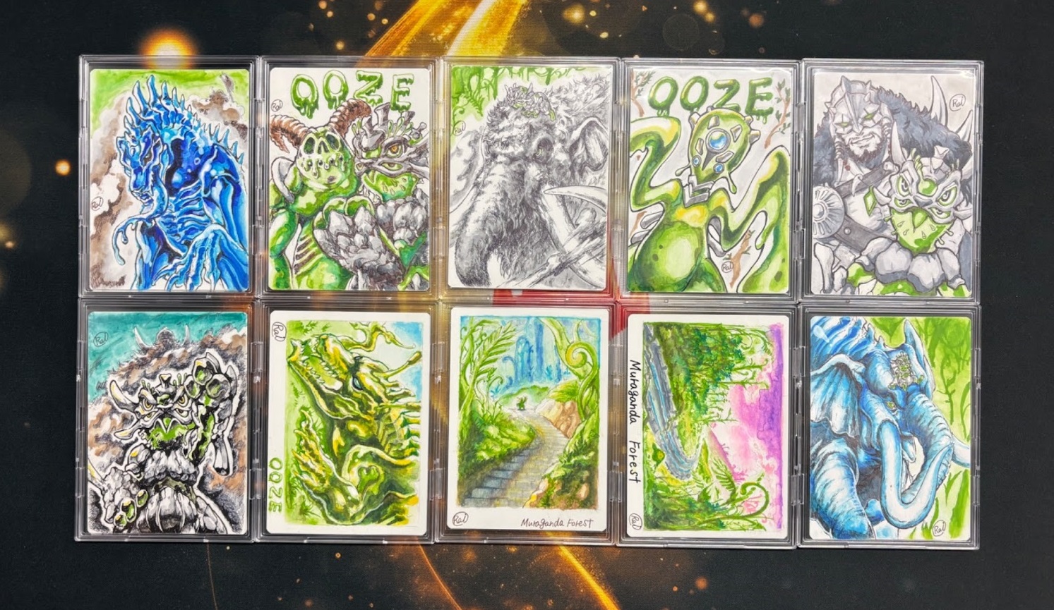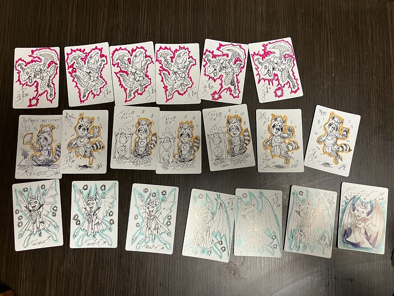 These are not artist proofs. The sketches are drawn on the TokyoMTG original Snake tokens.